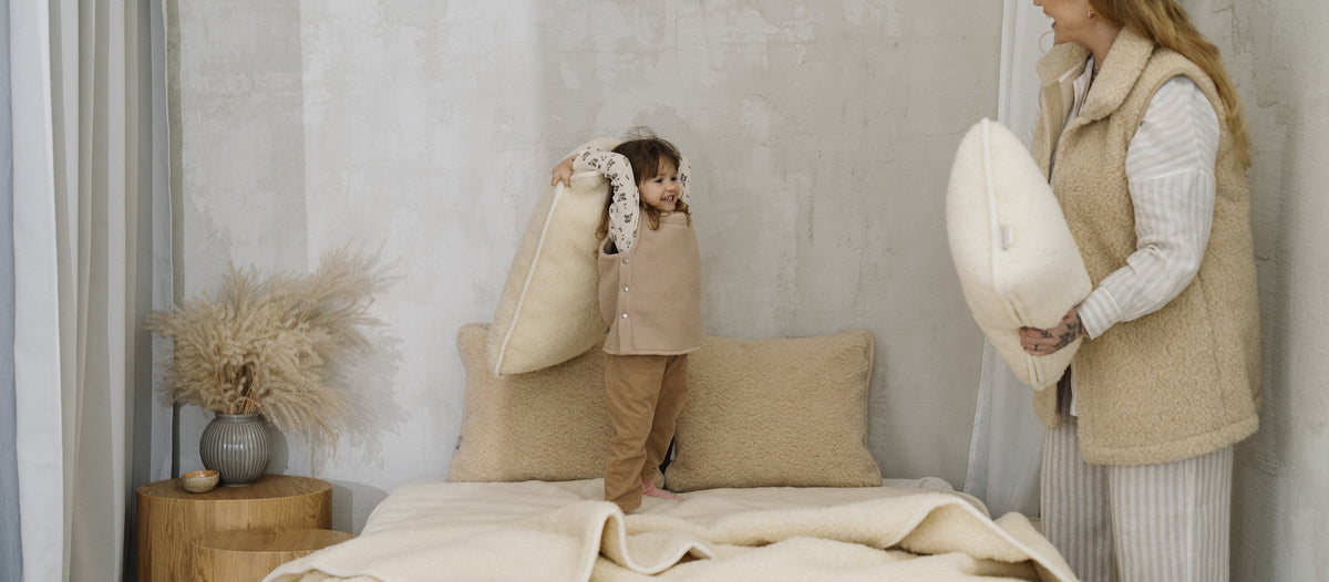 Jede Decke wird in Europa aus zertifizierter Naturwolle gefertigt. Das dichte, aber atmungsaktive Gewebe lässt Luft zirkulieren und hält dennoch wohlig warm. Eine Decke, die sich jeden Tag gut anfühlt – ob über dem Bett, auf dem Sofa oder um die Schultern gelegt an einem kühlen Abend.