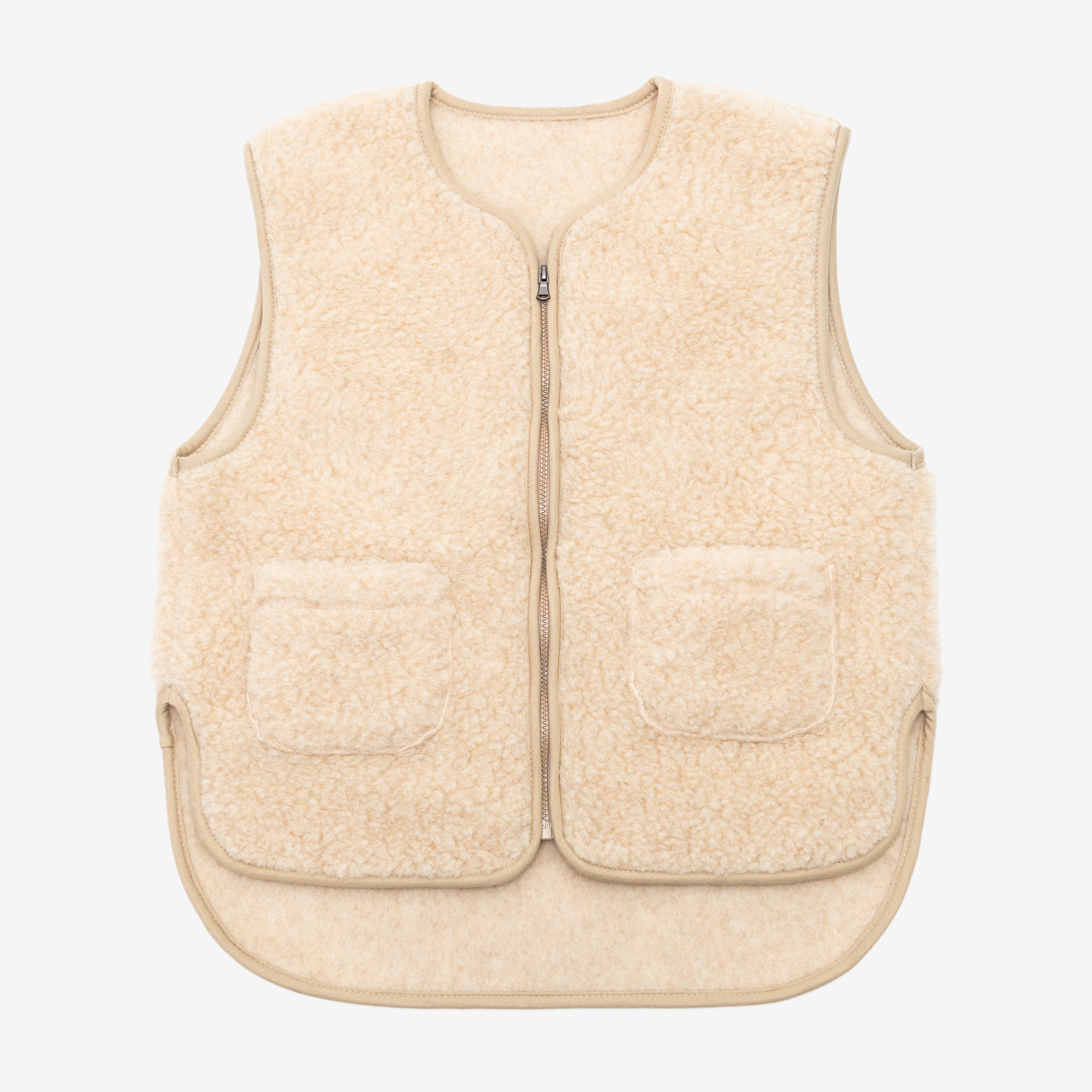 Diese Merino-Wollweste steht ganz im Zeichen natürlicher Bequemlichkeit. Sie fühlt sich weich und angenehm an, spendet Wärme ohne zu beschweren und lässt die Haut atmen. Man kann sie über einem Hemd oder Pullover tragen – zu Hause, draußen oder überall dort, wo man sich wohlfühlen möchte.